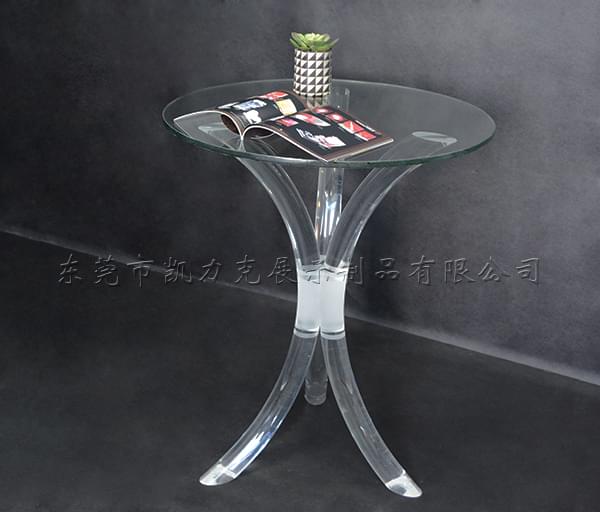 這款有機(jī)玻璃桌子是采用三條透明的棒熱彎成弧形作為支架,然后再加一塊圓形的玻璃桌面組合而成,亞克力材料質(zhì)輕、透明度高、易加工,玻璃材質(zhì)耐刮花,這兩個(gè)材料結(jié)合,讓這個(gè)有機(jī)玻璃桌子,造型簡(jiǎn)約時(shí)尚,耐用。