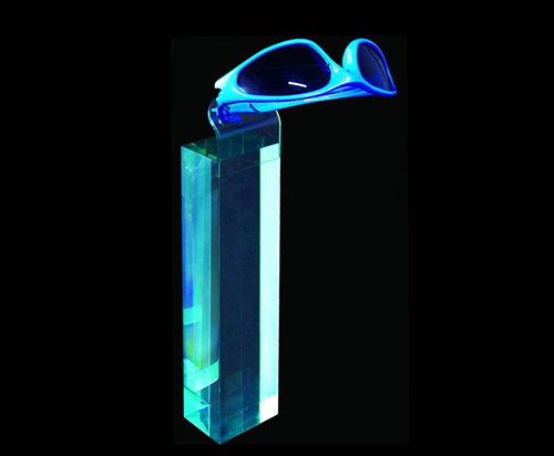 該產(chǎn)品是一款亞克力眼鏡架,材料顏色和大小可以根據(jù)眼鏡柜子和眼鏡的特點訂做.藍色的眼鏡配透藍色的架子顯得很搭調(diào),透藍色襯托出眼鏡的精美。